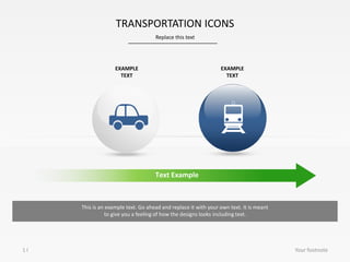 This document provides an example text to demonstrate how transportation icons and text would look together. The example includes placeholder text that can be replaced by the user with their own text. A footnote is also included to potentially provide additional context or information.