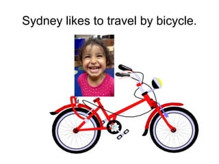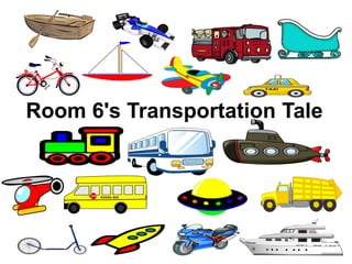 The document describes the different modes of transportation preferred by students and teachers in Room 6, with each person listing their favorite way to travel, such as by bicycle, train, motorcycle, helicopter, sailboat, city bus, scooter, sleigh, race car, submarine, airplane, row boat, spaceship, fire truck, garbage truck, rocket ship, school bus, yacht, and taxi.