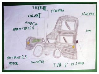 En aquest grupde medi, la majoria de les preguntes que ens hem fet dels mitjans de transport tenen a veure amb els cotxes i el seu funcionament, tot i que ens hem fet preguntes relacionades amb altres transports. Per aquest motiu, en els nostres dibuixos inicials, sols hi veureu cotxes i escrites totes aquelles coses que nosaltre sabem que tenen.