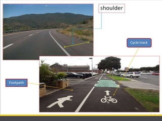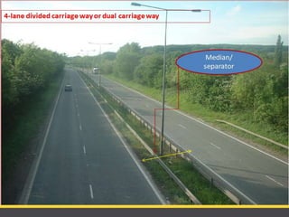 This document provides information about transportation engineering and the historical development of roads. It discusses early footpaths and animal-drawn vehicles, and the development of Roman, French, British, and Indian road networks. It also covers classifications of highways, road patterns, the 4 Es of transportation, and urban road classification systems including arterial, sub-arterial, collector, local, and cul-de-sac streets.