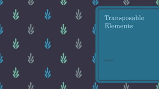 Transposable elements, also known as jumping genes, are DNA sequences that can move within genomes. They were first discovered in the 1940s and are common across eukaryotes. Transposable elements are divided into two classes - retrotransposons, which move via an RNA intermediate, and DNA transposons, which move via a cut-and-paste mechanism. While transposable element movement can cause mutations, they also contribute to genetic diversity and evolution through processes like exon shuffling. Eukaryotes have developed epigenetic mechanisms like DNA methylation and small interfering RNAs to regulate and silence transposable elements in genomes.