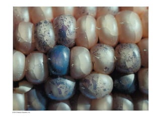 Transposable elements are mobile genetic elements that can move within genomes. They are found universally in prokaryotes and eukaryotes. There are two classes - those that directly cut and paste DNA, and retrotransposons that use an RNA intermediate and reverse transcriptase. Barbara McClintock discovered transposons in corn in the 1940s-1950s, showing the Ac autonomous element controls movement of the non-autonomous Ds element, causing color patterns in kernels. Transposable elements can impact genes by inserting into or near them, and have played an important role in genome evolution.