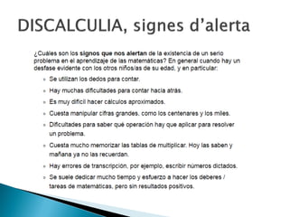 Tns específics de l’aprenentatge: Dislèxia, discalcúlia, tell, tnva,...