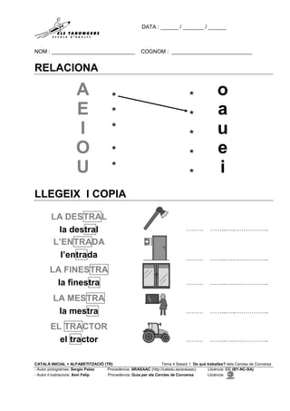 CATALÀ INICIAL + ALFABETITZACIÓ (TR) Tema 4 Sessió 1 De què treballes? dels Cercles de Conversa