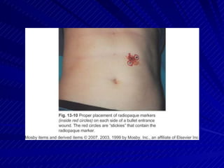 Trauma radiography involves specialized procedures to image patients with traumatic injuries. Trauma centers are classified by level depending on available resources and specialties. Level I centers have the most comprehensive services available 24/7. Radiographers in emergency departments must be prepared to perform a variety of trauma imaging procedures on patients of all ages using specialized equipment. Common trauma projections include lateral cervical spine, cervicothoracic, and thoracic and lumbar spine views. Quality, speed, accuracy and attention to detail are important principles for optimal trauma radiography.