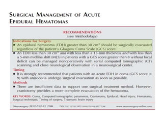 - Severity is classified using the Glasgow Coma Scale. More severe injuries have higher mortality rates. Predictors of poor outcome include lower GCS, age over 60, abnormal CT findings, and hypotension.