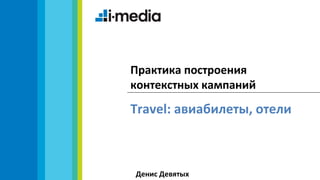 Документ описывает практику создания контекстных кампаний в сфере туризма, включая рекламу авиабилетов и отелей. Упоминается использование автоматизации для управления большим количеством объявлений и оптимизации рекламных кампаний. Также подчеркивается важность анализа данных и адаптации стратегий к конкретным бизнес-целям.