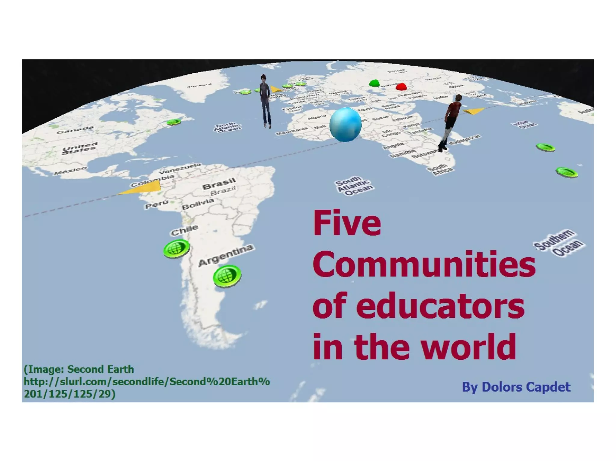 The Discovery Educator Network, ISTE standards, and the Institute for Cooperative Education in Second Life aim to foster collaboration between educators using digital tools and resources. The Espurna Project wiki allows educators to freely access and share presentations, while Connectivitas researches the growth of connectivism in Spanish-speaking communities.