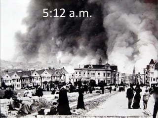 The 1906 San Francisco earthquake struck the city of San Francisco at 5:12 am on April 18, 1906, causing widespread damage with an estimated magnitude of 7.9. Over 80% of the city was destroyed and 250,000 residents were left homeless, with damage estimated at $400 million and over 3,000 deaths resulting from the quake and subsequent fires. The effects of the earthquake were felt from San Francisco north through the Santa Cruz Mountains to San Jose, and as far south as Los Angeles.