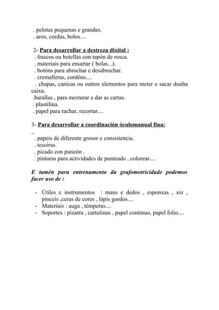 membros , sen cambio de lugar) e remata coa motricidade fina