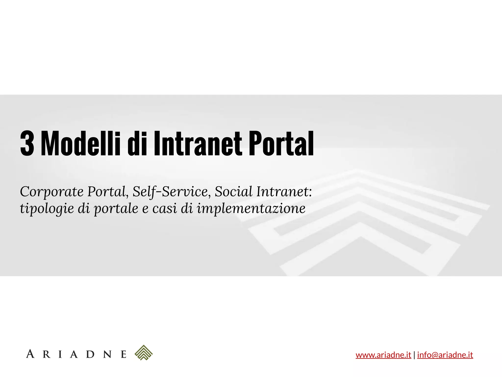 Il documento presenta l'offerta di Ariadne, una società specializzata in sistemi di portale intranet, evidenziando tre modelli principali: corporate portal, self-service e social intranet. Viene inoltre descritta l'evoluzione delle intranet e riportati casi reali di implementazione in diversi settori, come finance e healthcare. Infine, si sottolineano le aspettative future riguardo a design centratto sull'utente e supporto alla collaborazione.