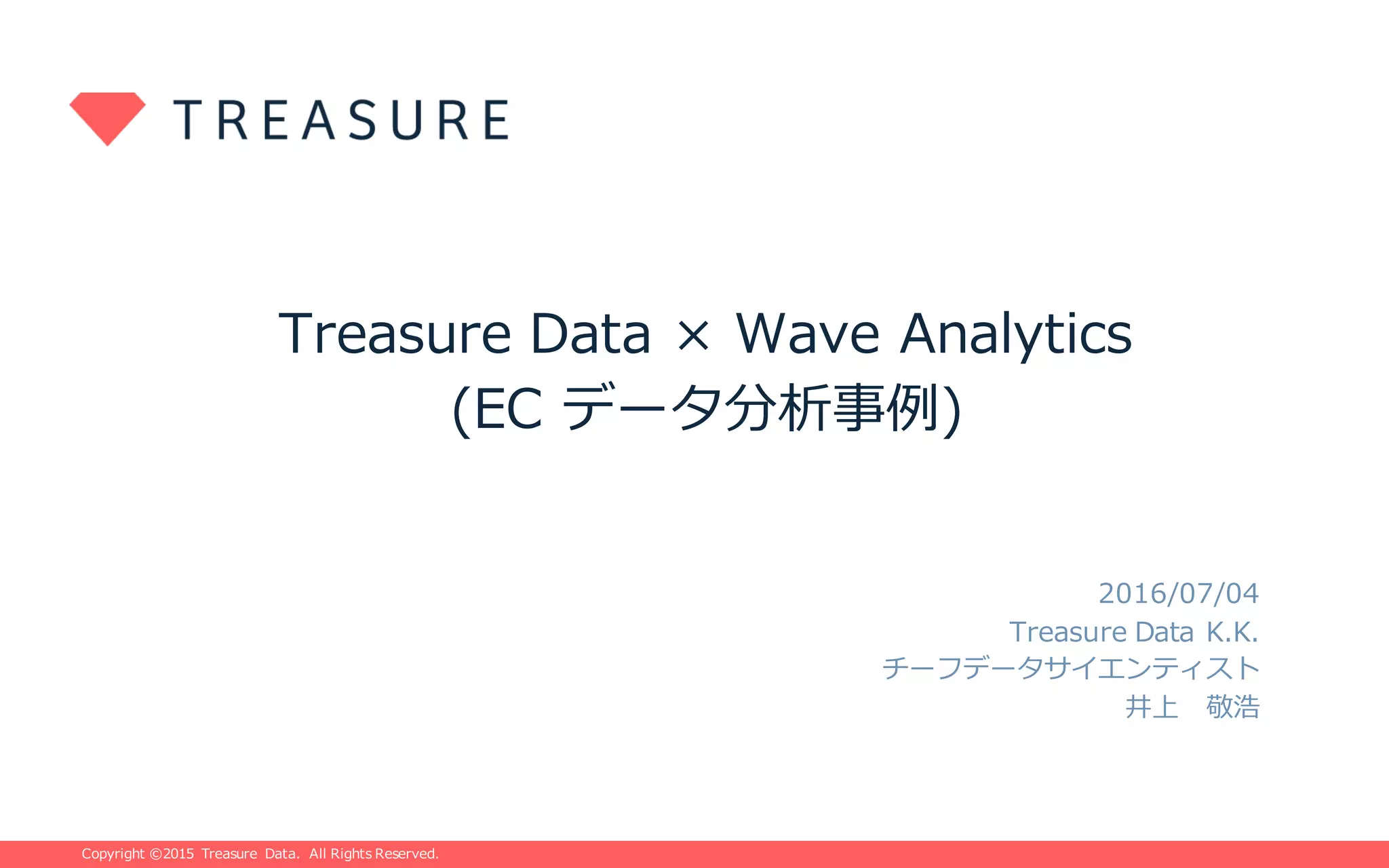 Data. All Rights Reserved.Copyright ©2015 Treasure Data. All Rights Reserved. Treasure Data × Wave Analytics (EC データ分析事例) 2016/07/04 Treasure Data K.K. チーフデータサイエンティスト 井上 敬浩