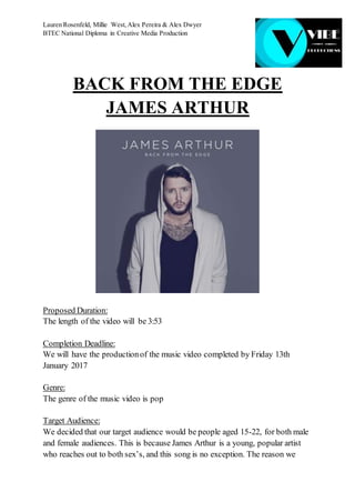 - The group will produce a 3 minute and 53 second music video for James Arthur's song "Back from the Edge" to be completed by January 13, 2017.