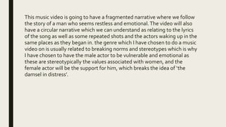 The music video will have a fragmented and circular narrative following a restless man and the emotional support of a woman. Scenes will include the two waking up together with her wearing his shirt, spending time in the woods drinking coffee, and the man showing vulnerability alone in his room at night. The woman wears a red dress to lift his spirits and they go out together where lights and colors change throughout the night. Repeated shots at the beach hint at the cycle repeating as the video ends with the woman turning out the light for the man to sleep, implying the cycle will continue again.