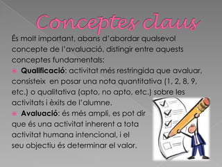 etc.) o qualitativa (apto, no apto, etc.) sobre les