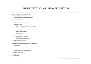 PROPIETATS DE LAFUNCIÓ PRODUCTIVA