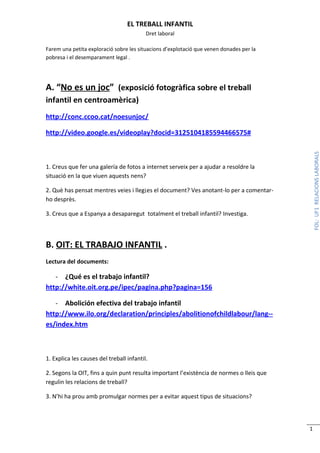 3. Creus que a Espanya a desaparegut totalment el treball infantil? Investiga.