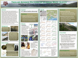 This study examined patterns of treeline advance in white spruce in south-central Alaska. Dendrochronological data was collected from 17 sites. The researchers found variable patterns of treeline advance across sites, with some showing clear advancement over time and others maintaining stable positions. Topography influenced advance rates, with lower sloped sites experiencing greater rates of treeline movement upslope. While some individual sites showed treeline advance, the overall findings indicated a complex relationship between climate change and treeline position in this region.