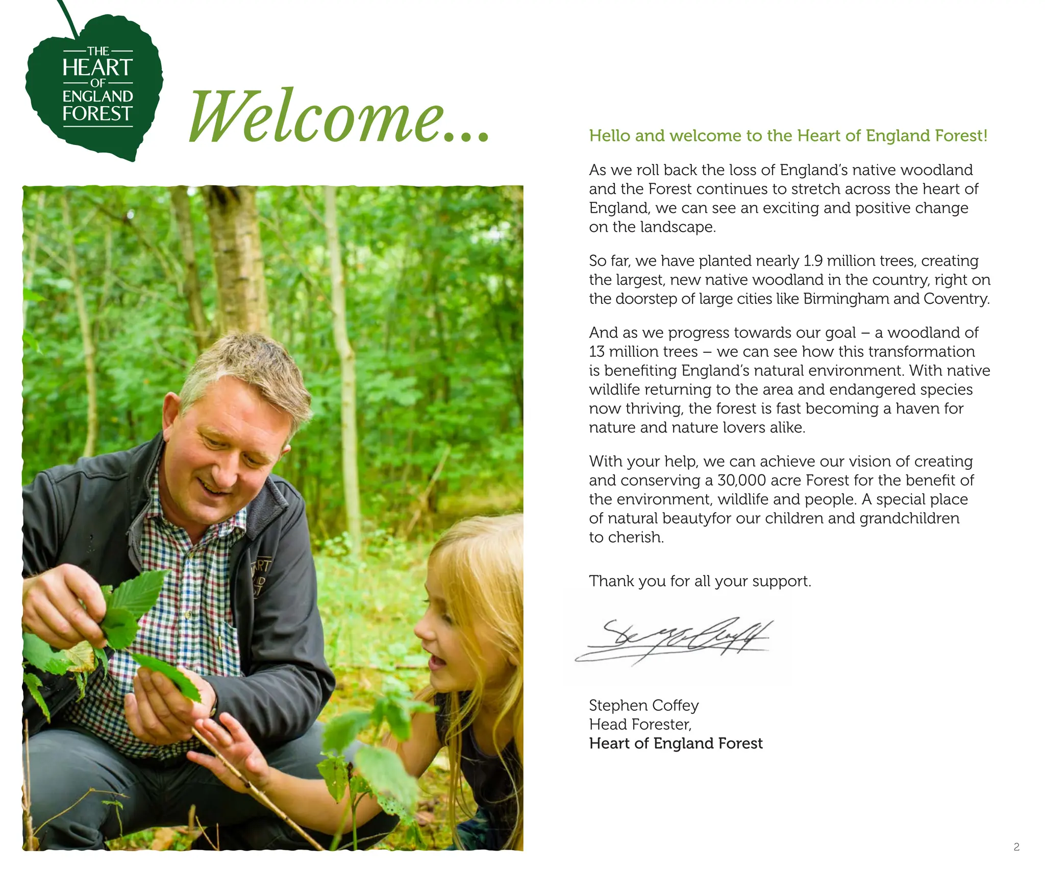 The Heart of England Forest is dedicated to restoring native woodlands, having planted nearly 1.9 million trees towards a goal of 13 million trees across 30,000 acres, benefiting England's wildlife and natural environment. Through the planting of native broadleaf species, the forest aims to create a vibrant ecosystem that supports both wildlife and visitors. The document also provides a guide to various native tree species, highlighting their characteristics, habitats, and ecological importance.