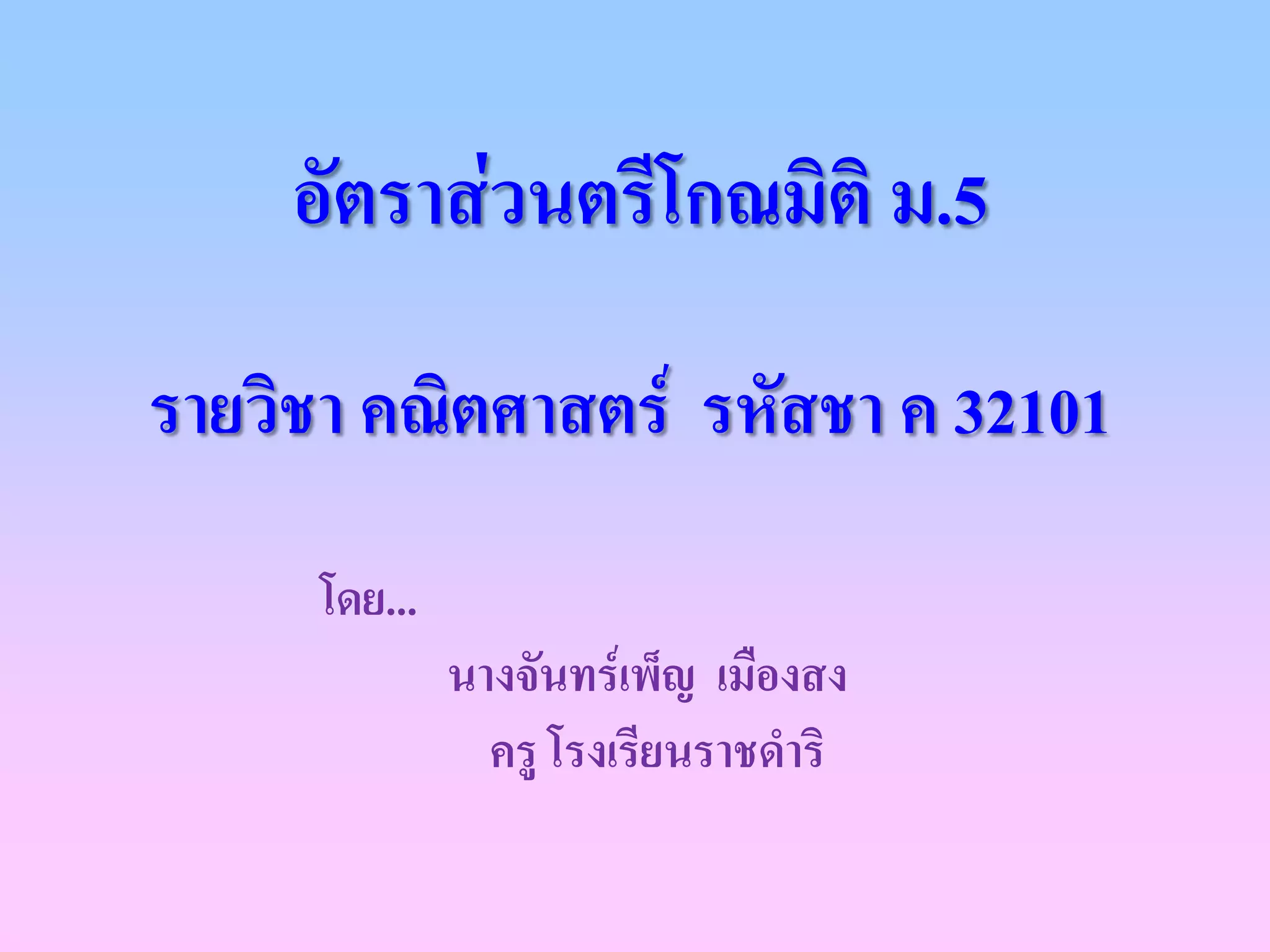 1. ความยาวของดานตรงขามมุม A = a เรียกวา ไซนของมุม A เขียนแทนดวย sinA
