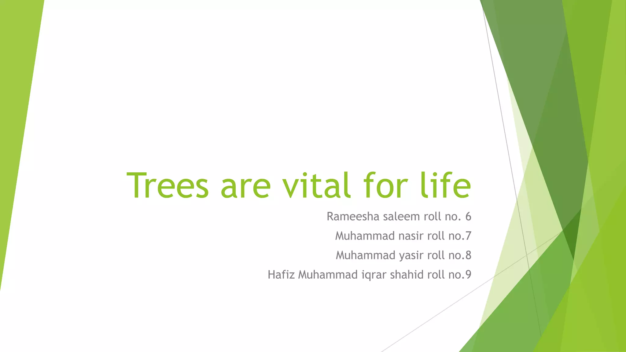 This document discusses the importance of trees and their many benefits. It begins by stating that trees are vital for life and have always helped improve the human condition. It then lists 10 reasons why trees are necessary: 1) they produce oxygen; 2) clean the soil; 3) control noise pollution; 4) slow storm water runoff; 5) act as carbon sinks; 6) clean the air; 7) provide shade and cooling; 8) act as windbreaks; 9) fight soil erosion; and 10) increase property values. The document also notes that trees contribute to food security by providing direct food and fuel, income, and important ecosystem services.