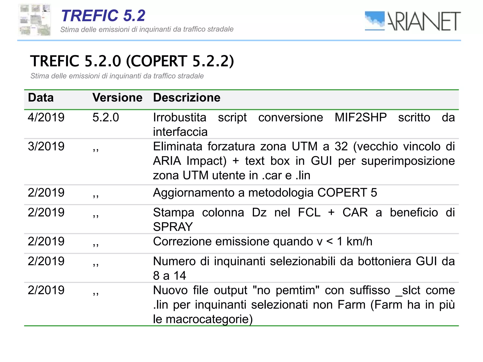 Il documento descrive aggiornamenti e miglioramenti apportati a diverse versioni del software COPERT per la stima delle emissioni di inquinanti da traffico stradale. Le modifiche includono l'inserimento di nuovi veicoli, l'aggiornamento dei fattori di emissione e delle metodologie di calcolo. Vengono inoltre forniti strumenti e script per l'elaborazione e l'analisi dei dati relativi alle emissioni.