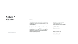 Coduxe proposes to digitize and streamline the management process for Trek Travel, currently reliant on spreadsheets, by developing a web app that enhances automation and data management. The app aims to bolster productivity for managers and improve customer satisfaction through advanced features including trip scheduling, guide management, and data analytics. Utilizing a user-centered design approach, the platform will support both mobile and desktop applications, ensuring ease of use and operational scalability.