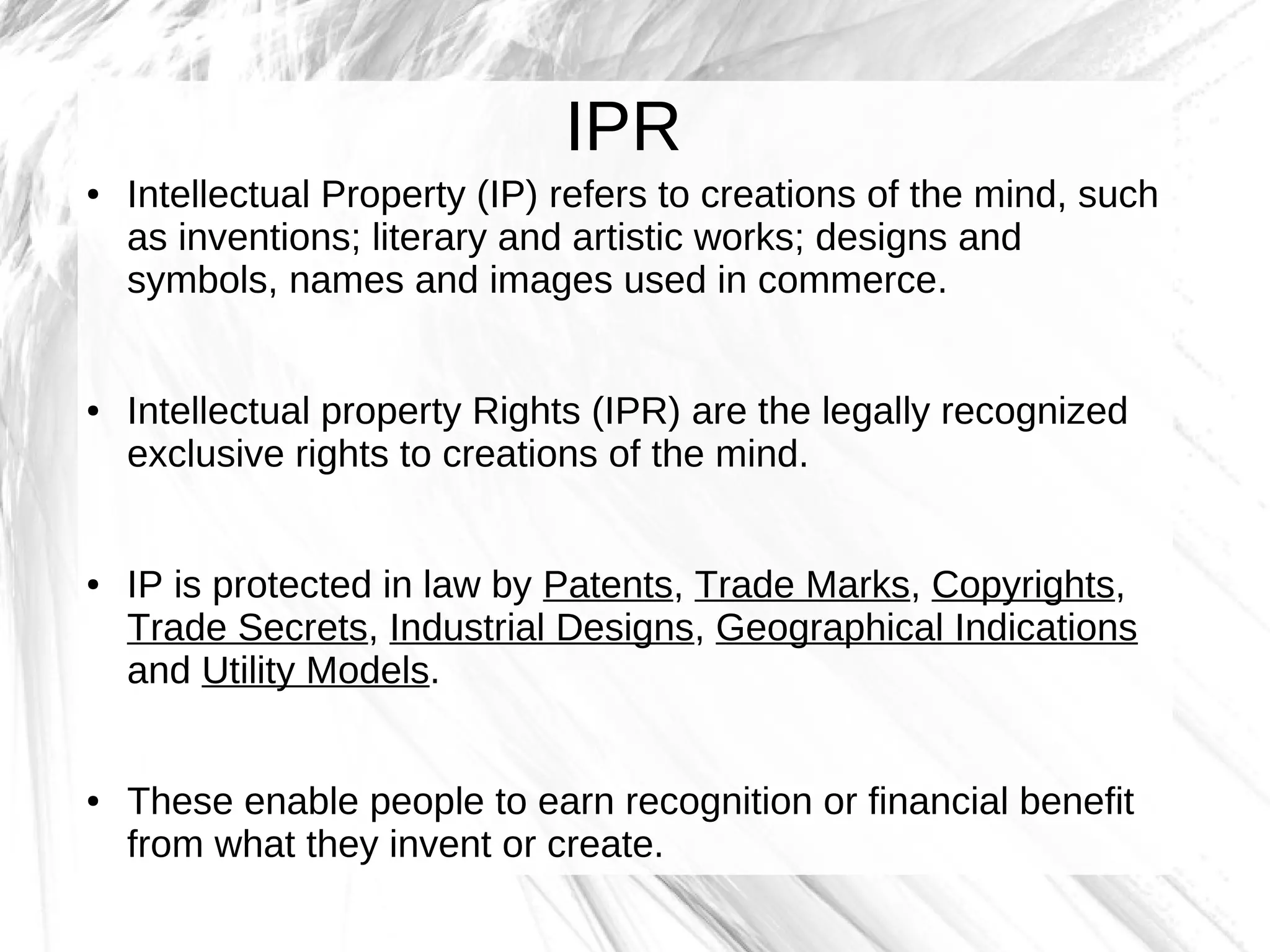 The document summarizes trends in intellectual property rights (IPR) seminars and conferences from 2010 to 2014. It finds that the number of seminars increased each year from 2 in 2010 to 7 in 2013. Patent was the most common topic. Electronics, biotech and pharma saw the most patent activity. The document also reviews IPR course offerings at major Indian institutions, finding that patent, trademark, copyright and design were covered at most schools.