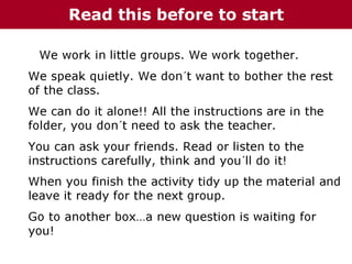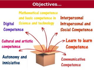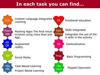 The document outlines various interactive educational activities that utilize technology, including creating videos using animated characters and augmented reality to enhance learning experiences. It involves tasks like discussing personal interests, designing town layouts with programmable robots, and exploring emotions to create a collaborative emotions book. The activities are designed to engage students creatively while fostering collaboration, research skills, and comprehension in subjects ranging from history to science.