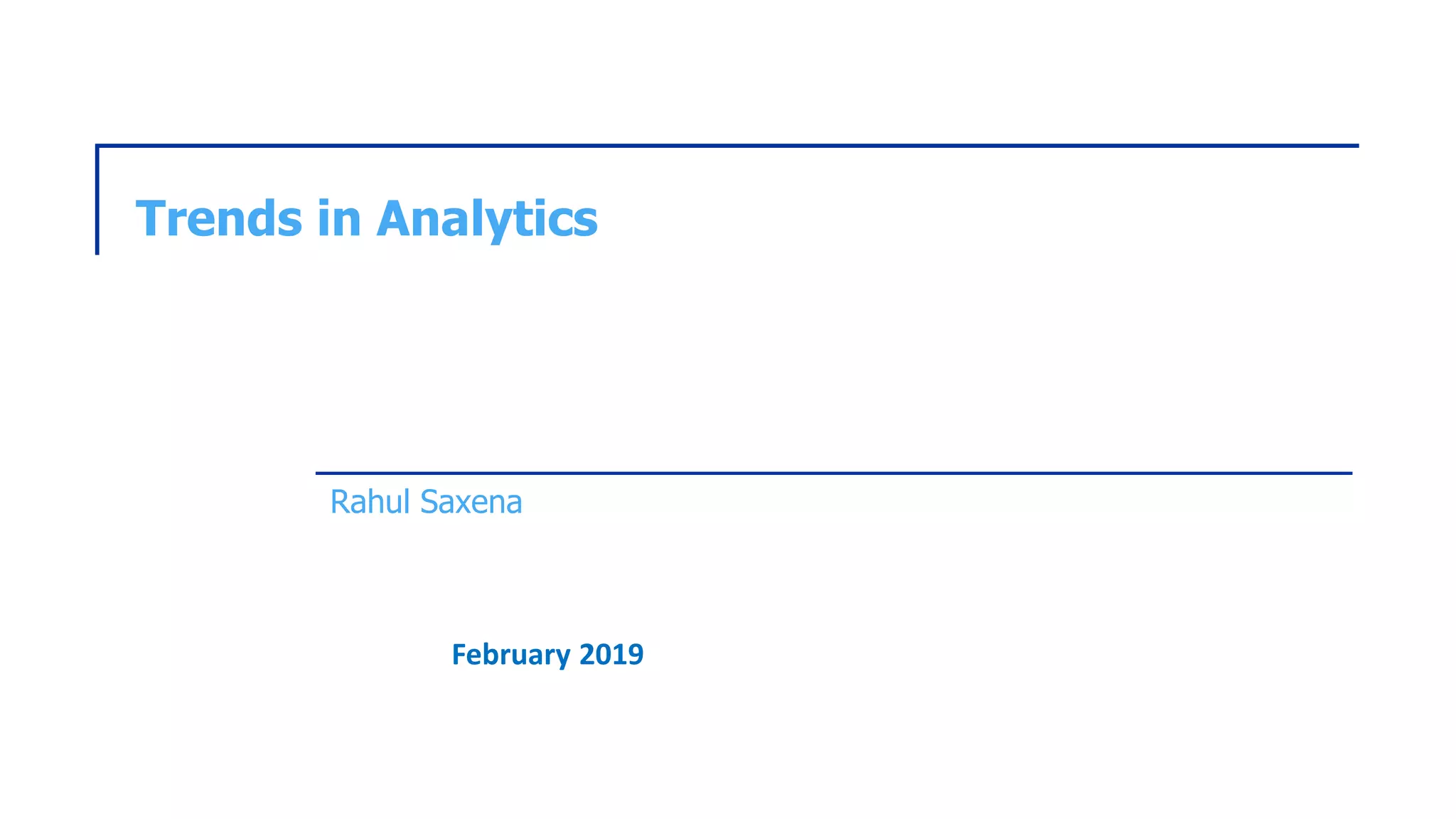 The document discusses the growing significance of analytics in decision-making, highlighting its association with artificial intelligence and its impact on traditional business models. It presents various trends in analytics for 2019, including data privacy, machine learning, and industry disruption driven by data-driven insights. Success stories illustrate how companies like Shell, Cargill, and Netflix utilize analytics to enhance operational efficiency and decision-making processes.