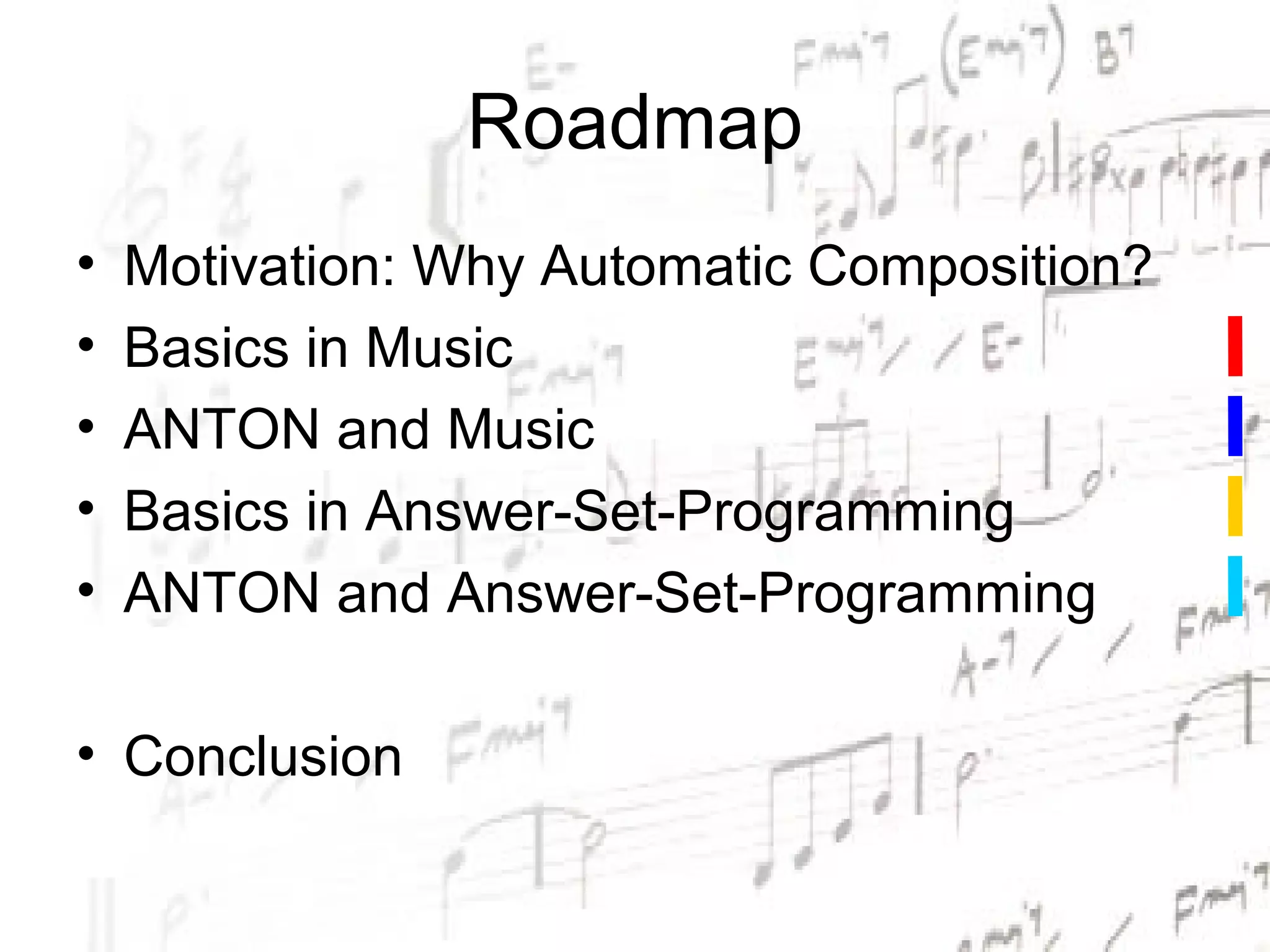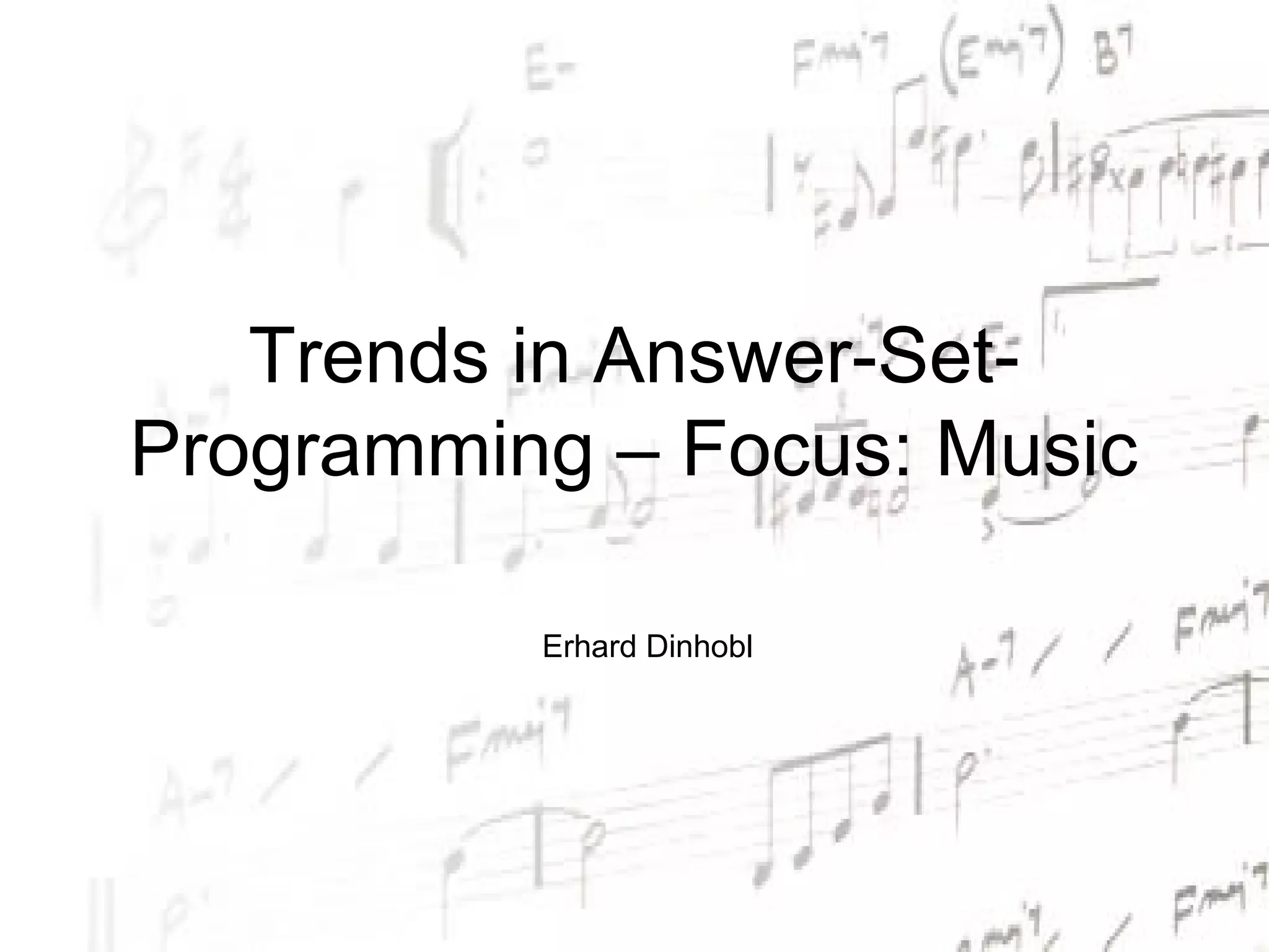 This document summarizes a presentation on automatic music composition using answer set programming. It discusses using the ANTON system to composition melodies and harmonies by applying declarative rules. ANTON uses 191 lines of code and answer set programming to represent 28 melodic and harmonic rules to generate valid musical pieces. The system can compose for multiple voices and outputs pieces in standard music formats. Future work aims to improve performance and expand ANTON's capabilities to real-time improvisation and more complex musical structures.