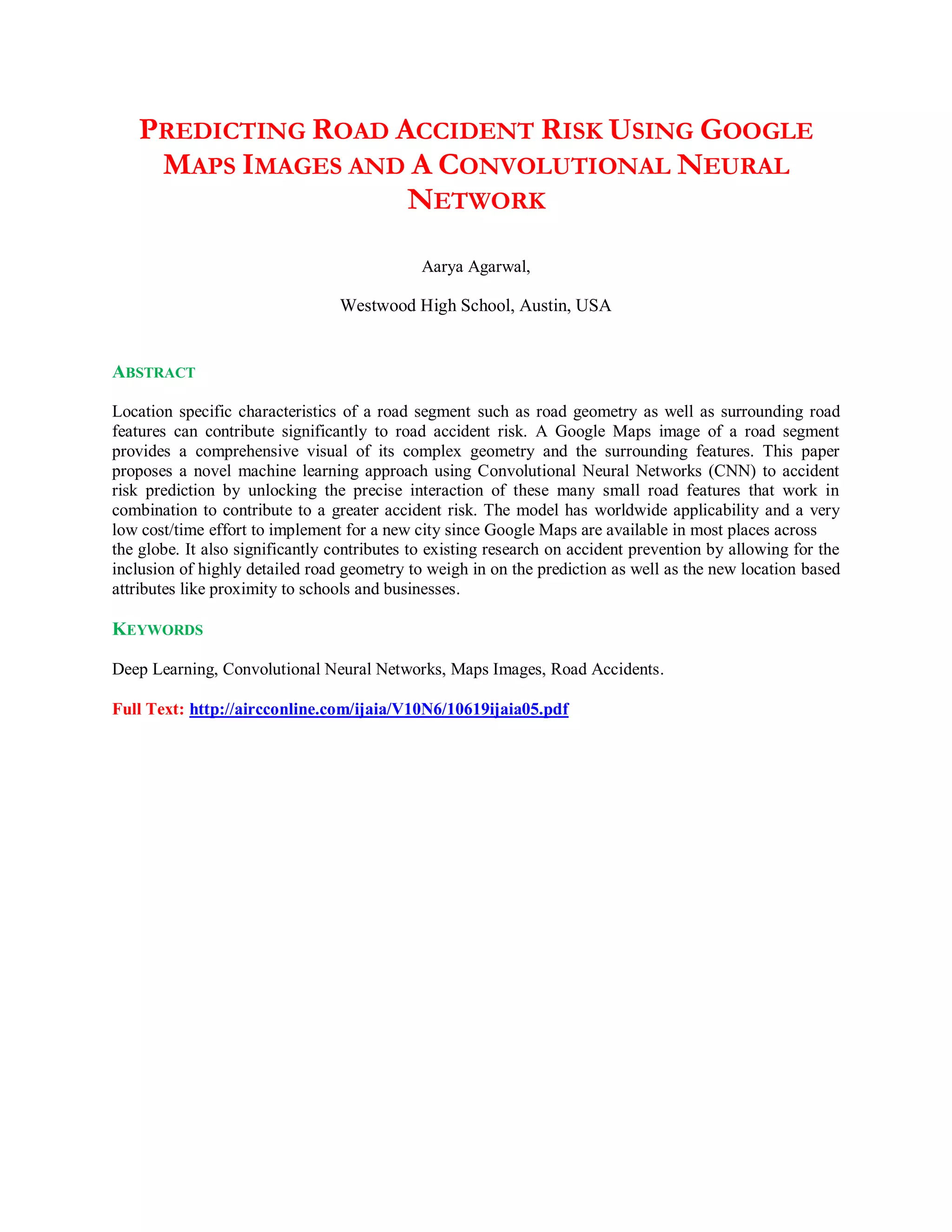 The document discusses innovations in using convolutional neural networks (CNNs) for predicting road accident risks, enhancing human-robot interaction through intention prediction, and implementing transfer learning for iris recognition. It highlights the application of CNNs in various fields, emphasizing the model's efficiency and low implementation costs for accident predictions and the robustness of deep learning methods in recognition tasks. The research contributions aim to improve safety and interaction through advanced machine learning techniques.