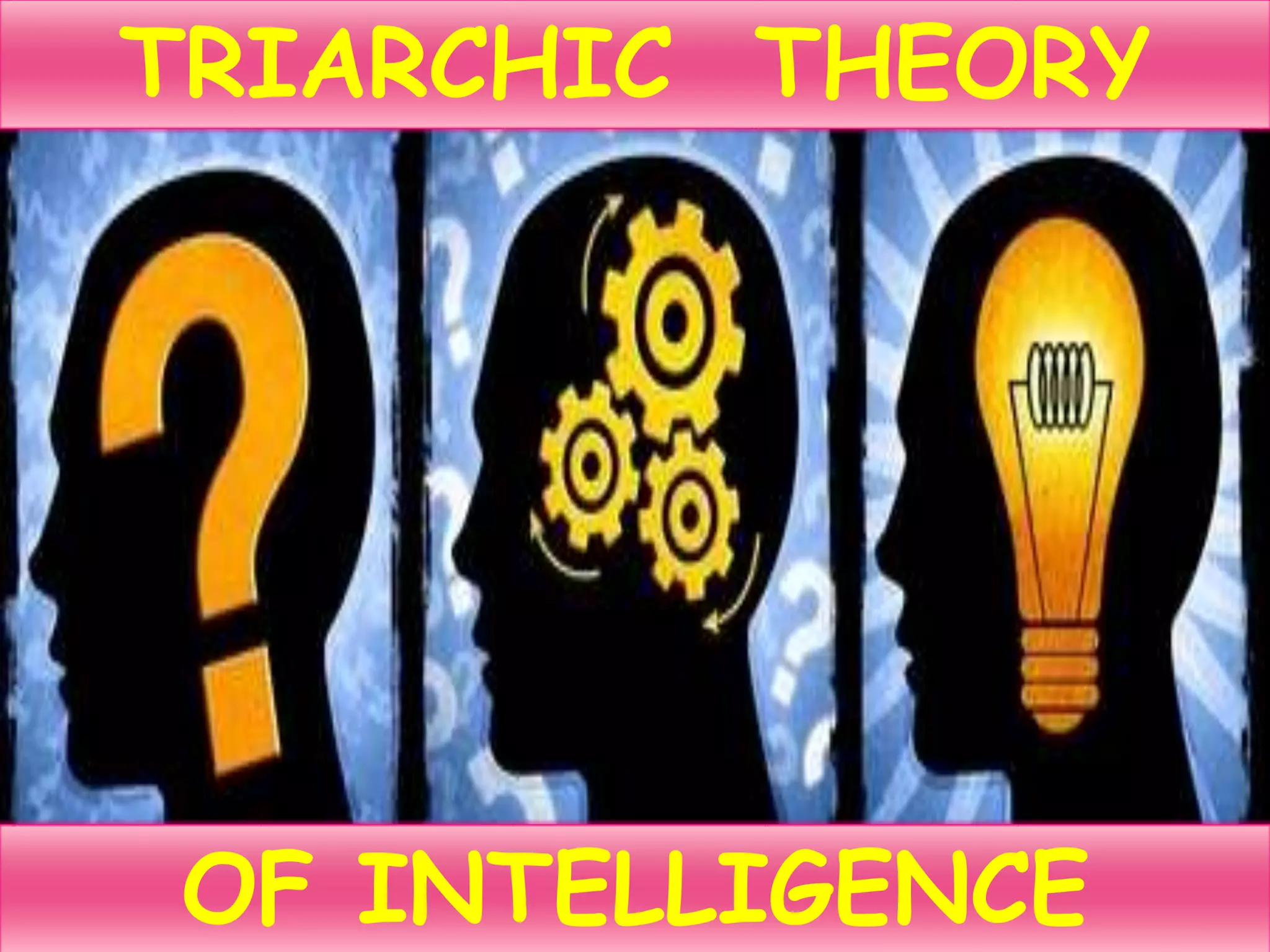 Sternberg developed a triarchic theory of intelligence comprising analytical, creative, and practical thinking elements that are balanced by metacognition. The analytical component involves planning, monitoring, and problem solving. The creative component focuses on developing new ideas and solutions. The practical component focuses on adapting to real-world contexts. Sternberg described types of people who rely more on certain elements, with the ideal being a balanced use of all three.