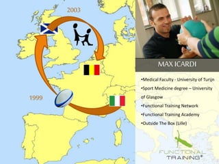 The document discusses the importance of periodization in triathlon training, emphasizing the need for structured training plans focused on specific fitness goals. It outlines the macrocycle and mesocycle concepts and highlights the benefits of functional training, including improved performance and injury reduction. Additionally, it lists signs of overtraining and suggests various training focuses for different phases of the training year.