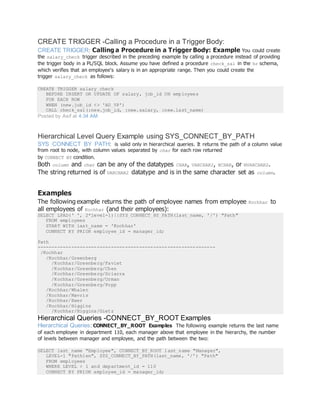 2. An example is given of a compound trigger that enforces a business rule limiting salary increases to 10% of the department average without causing a mutating error.
