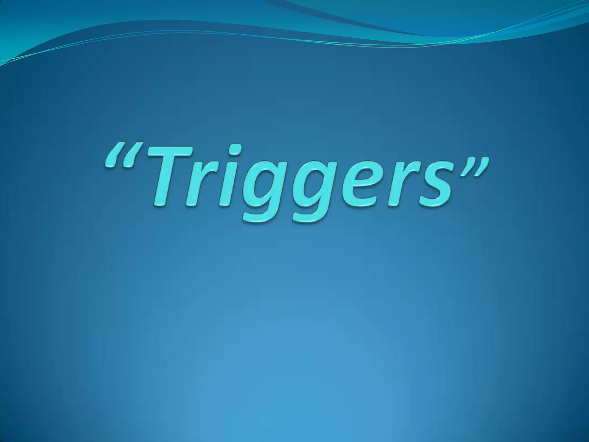 Triggers are stored procedures that are automatically executed in response to data modification events like insert, update or delete on a table. There are two types of triggers - DML triggers which respond to data manipulation statements, and DDL triggers which respond to data definition language statements like create, alter or drop. Triggers can be used to perform validation, auditing or other actions in response to data changes. They can be disabled, enabled or modified as needed using SQL statements.