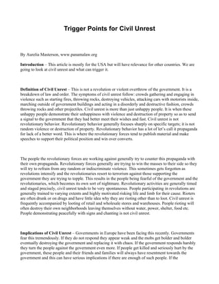 The anger and frustration are mounting all over the nation because of the failing educational system, the economic crisis and monetary policy, and the lack of civil liberties. Unrest will break out: riots, disobedience, and eventually change must occur. www.panamalaw.org