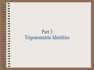 The document is a mathematics PowerPoint presentation by Eric Zhao about trigonometry. It introduces trigonometric functions like sine, cosine, and tangent and how they relate to right triangles. It explains how to use trigonometric ratios to solve for unknown sides and angles of right triangles. It also covers the Law of Sines and Law of Cosines for solving oblique triangles. The presentation provides examples of solving different types of triangles and converting between degrees and radians.