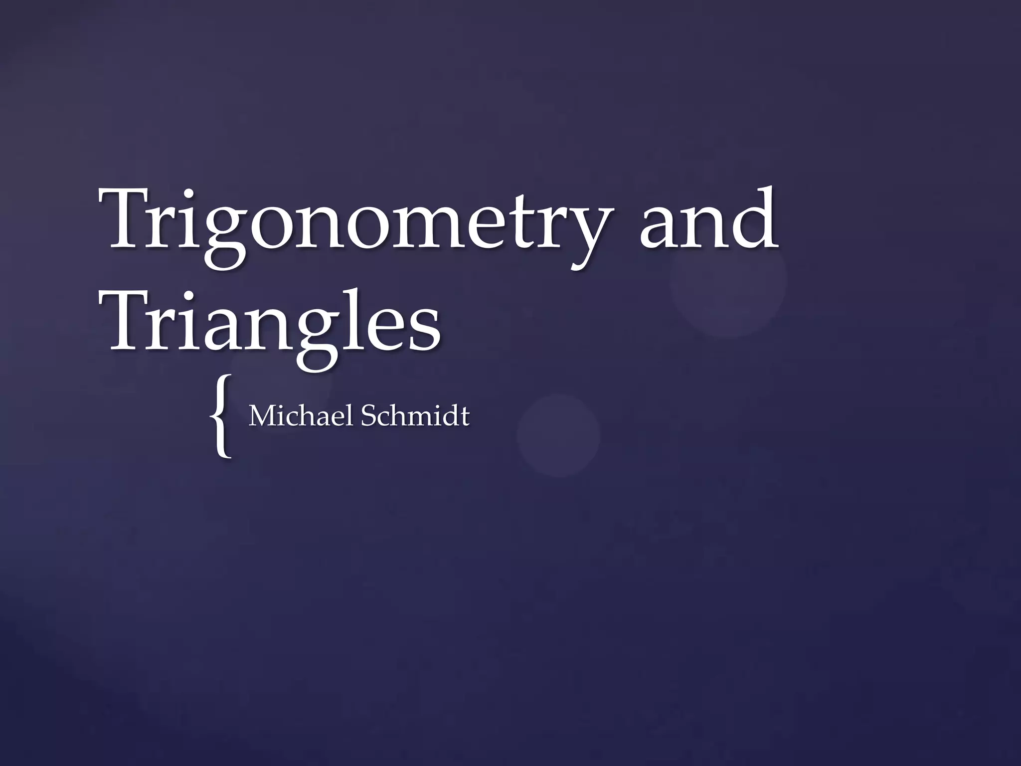 Trigonometry deals with relationships between the sides and angles of triangles. It uses trigonometric functions like sine, cosine, and tangent. Sine relates the opposite side to the hypotenuse, cosine relates the adjacent side to the hypotenuse, and tangent relates the opposite side to the adjacent side. Trigonometry can be used to find unknown side lengths or angles in triangles, including solving "story problems" where trigonometric applications are needed to determine real-world measurements. The document provides examples of using trigonometric functions like sine, cosine, and tangent to solve for unknown values in right and non-right triangles, as well as how to set up and solve word problems involving trigonometric applications.