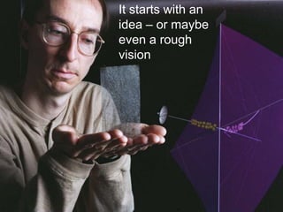 Community open source development allows innovators to develop ideas and visions through collaboration. It provides benefits like diverse skills, perspectives, and a combined sense of purpose. An example is NASA's OpenStack project, where NASA worked with a worldwide community to build an open source cloud stack. This aligned with NASA's open government and data plans. It grew rapidly from 30 companies in its first month to over 2300 members today. In summary, community open source is an option for innovators to turn ideas into reality by leveraging transparency, collaboration and participation. Due diligence is needed regarding intellectual property and security.