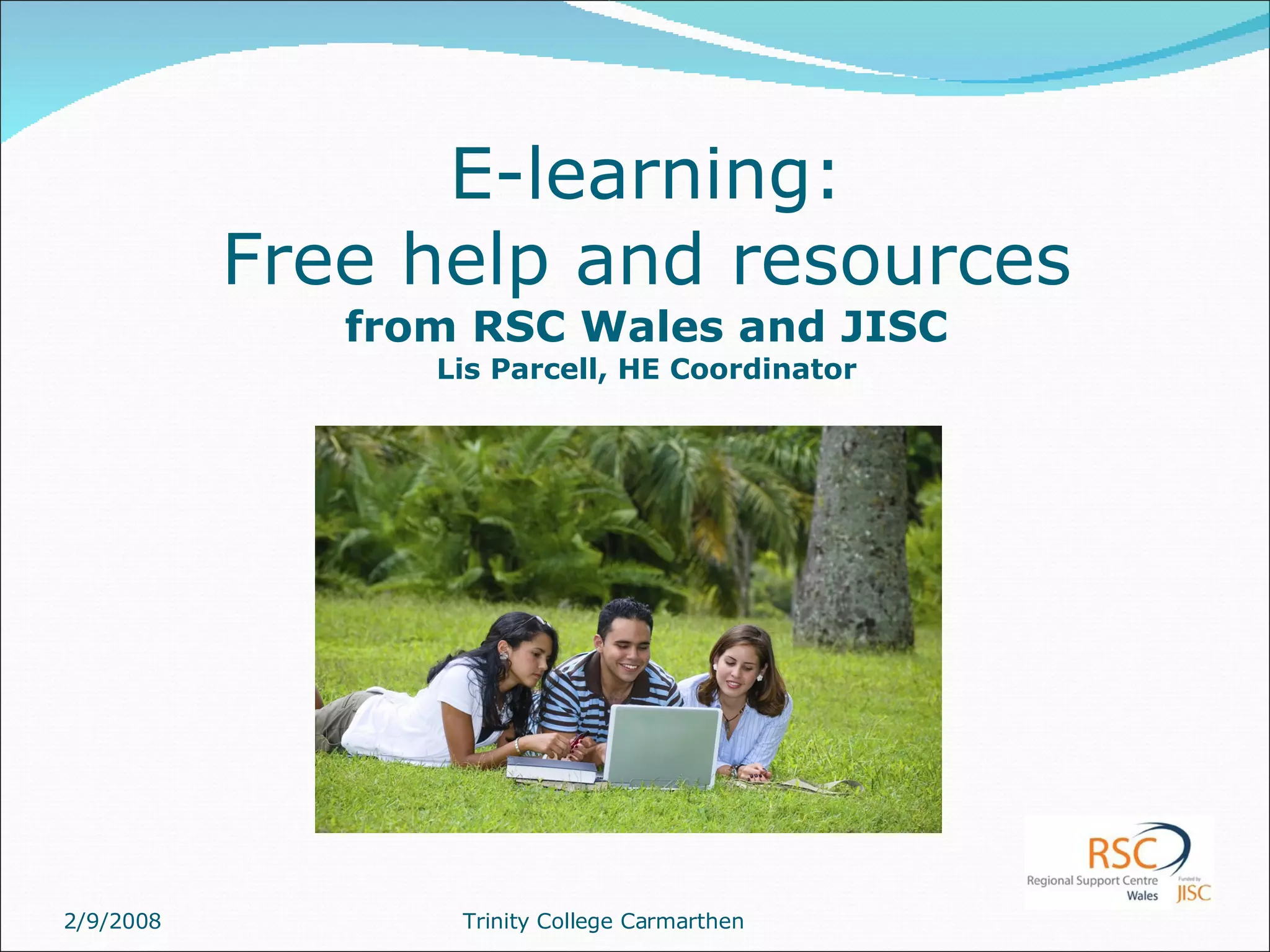 E-learning refers to technology-enhanced learning rather than a focus on technology itself. RSC Wales provides support and resources for e-learning aspirations of smaller higher education institutions in Wales through collaboration with partners like JISC and the Higher Education Academy. They offer services like visits, helpdesk support, information sharing through email lists and websites, and assistance with staff development to help institutions implement e-learning. JISC also provides several services and resources to support e-learning including tools for accessibility, subject resources, and case studies on effective e-learning practices.