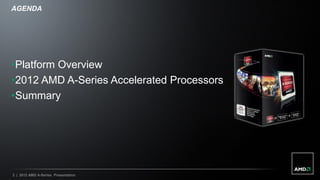 The document summarizes AMD's 2012 A-Series desktop platforms. Key points include: