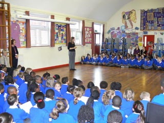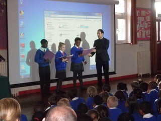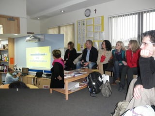 This document summarizes a trip to England from February 14th to 18th, 2011 by teachers participating in a Comenius exchange project. The teachers visited Freezewater Saint George School where they observed student assemblies and shared teaching methods from their home countries with English students. The group also planted trees, toured London via an unusual vehicle, visited a high school and factory, and expressed gratitude to their English hosts for an unforgettable learning experience.