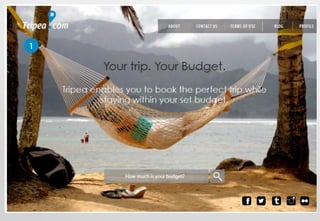 Tripea is a new travel website that prioritizes budget-minded planning, integrating booking for hotels, cars, and activities while providing a simplified user interface. It addresses existing travel website limitations by focusing on user experience and social media integration, applying a pay-per-click and conversion-based revenue model. With significant market potential and a strong team behind it, Tripea aims to attract a large user base through innovative strategies and partnerships.