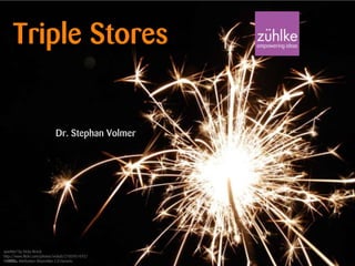 The document presents an overview of triple stores within the context of NoSQL databases and the semantic web, highlighting their advantages over traditional relational databases, such as schema flexibility and the ability to handle RDF data. It explains the concepts of RDF, URIs, and SPARQL as essential components for managing and querying data represented as triples. It concludes by discussing the coexistence of relational and triple stores in contemporary data management practices.