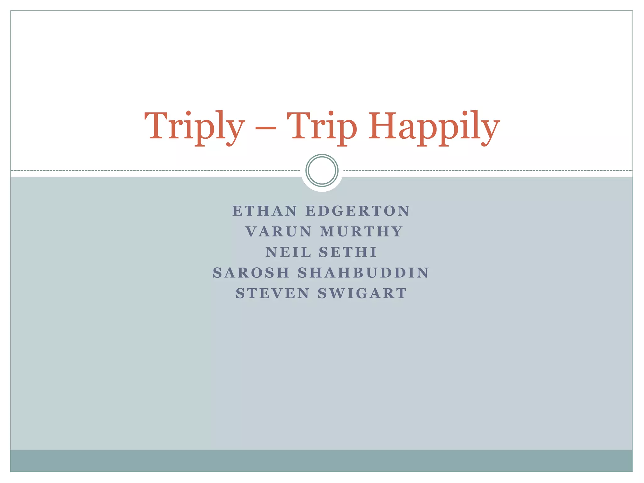 Triply is a social tourism application that aims to engage users by gamifying the travel experience. It will allow users to socially experience travel through interacting with locations, following friends, and earning points/badges. Key features include location filters, reviews, and intelligent itineraries. The team wants to address issues they faced traveling and make it more fun. They plan to generate revenue through ads and partnerships with tourism sites.