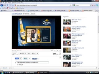- Corona uses a variety of advertising methods globally including TV, print, outdoor, digital, and social media ads to promote an image of relaxation and enjoying life's simple pleasures.