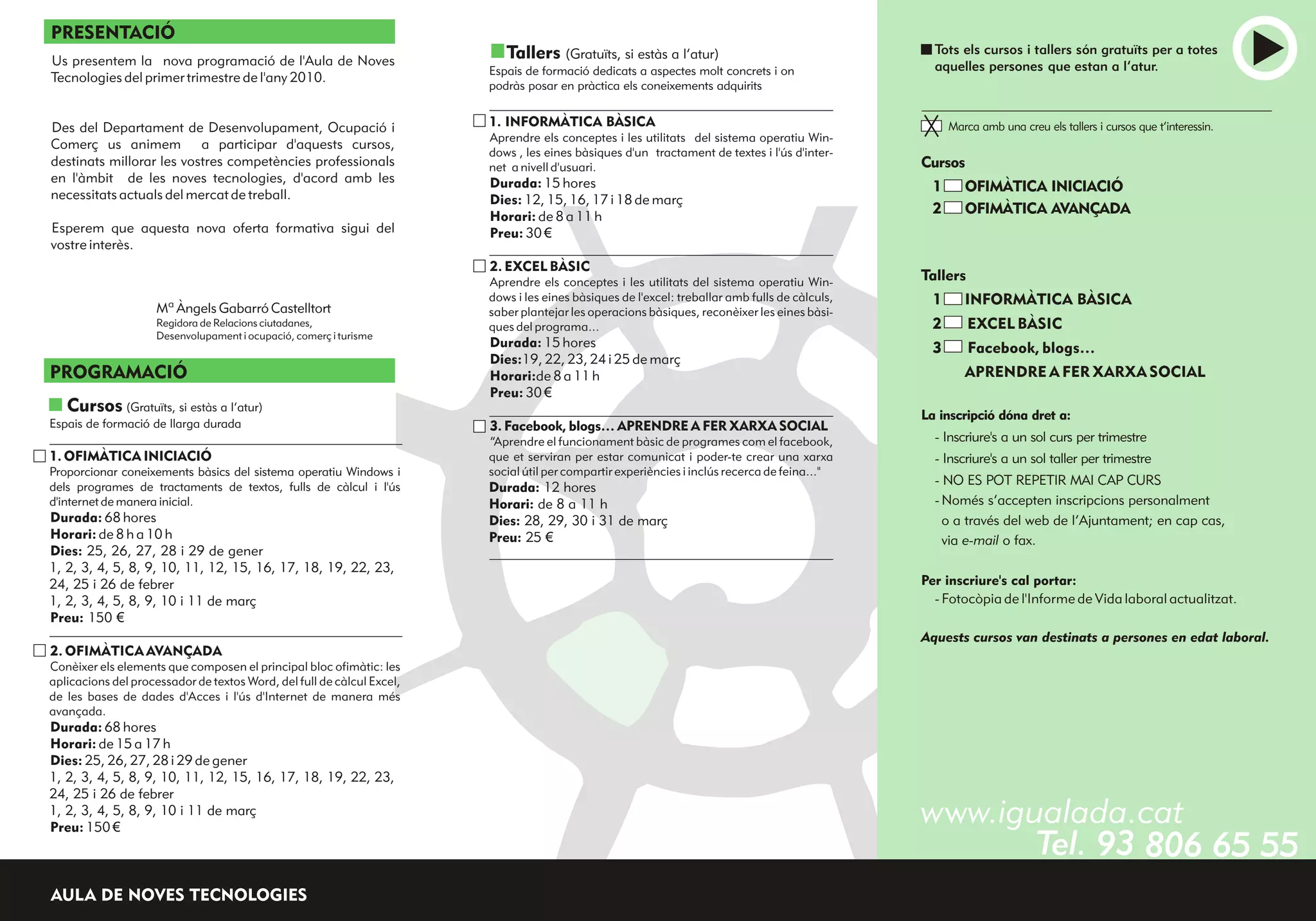 “Aprendre el funcionament bàsic de programes com el facebook, - Inscriure's a un sol curs per trimestre