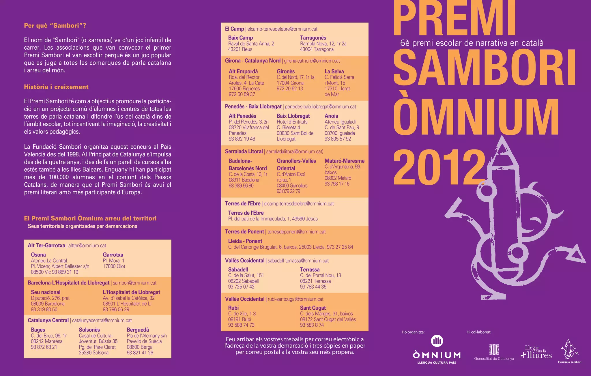la Franja i la Catalunya Nord. La convocatòria inclou tots Sisè Premi Sambori Òmnium 2012