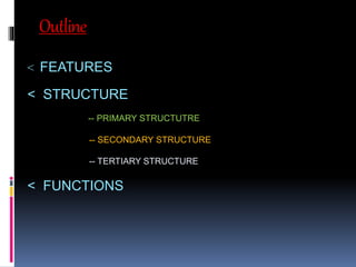 tRNA is a small RNA molecule that serves as the physical link between mRNA and the amino acid sequence of proteins during protein synthesis. It has a specific three-dimensional structure and performs several important functions. tRNA has a cloverleaf secondary structure and an L-shaped tertiary structure that allows it to interact with mRNA and transfer the correct amino acid to the growing polypeptide chain. tRNA plays key roles in translation, regulation of enzyme synthesis, and some viruses use tRNAs as primers for reverse transcription.